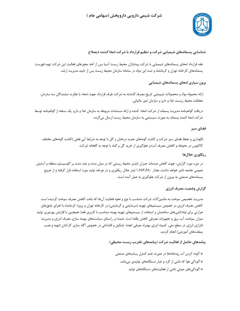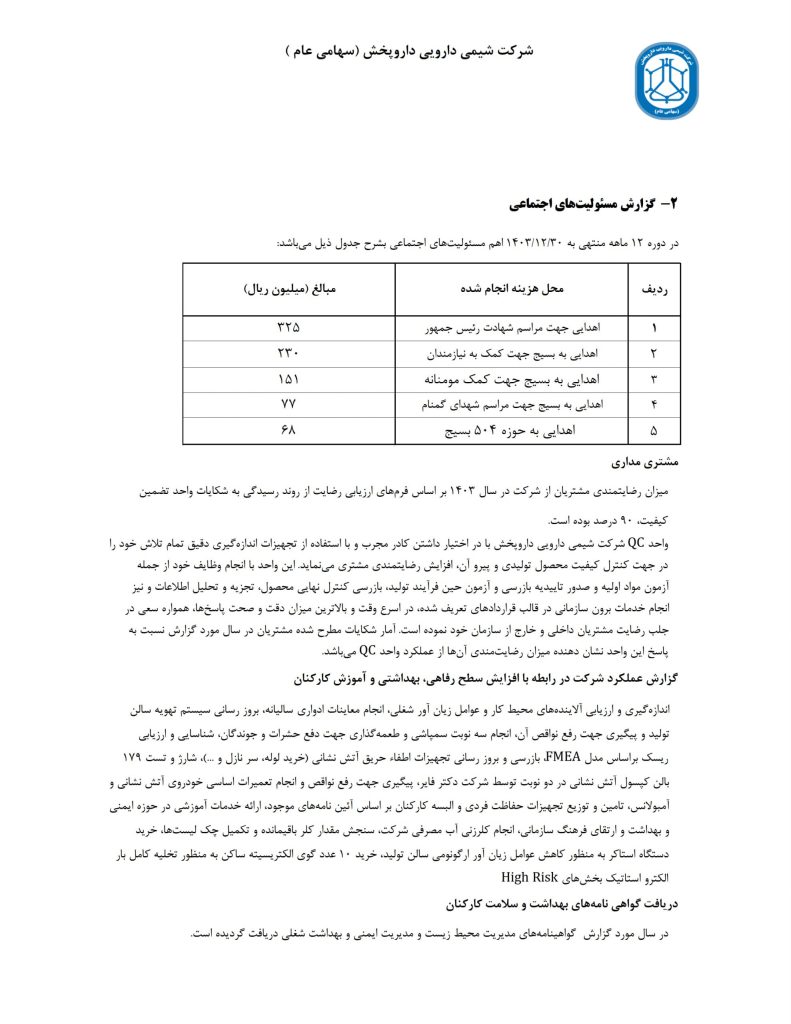 گزارشی از پایداری شرکت و مسئولیت اجتماعی شرکت